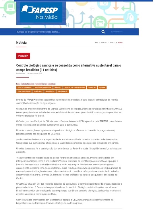 – Fapesp na Mídia: https://namidia.fapesp.br/controle-biologico-avanca-e-se-consolida-como-alternativa-sustentavel-para-o-campo-brasileiro/650653