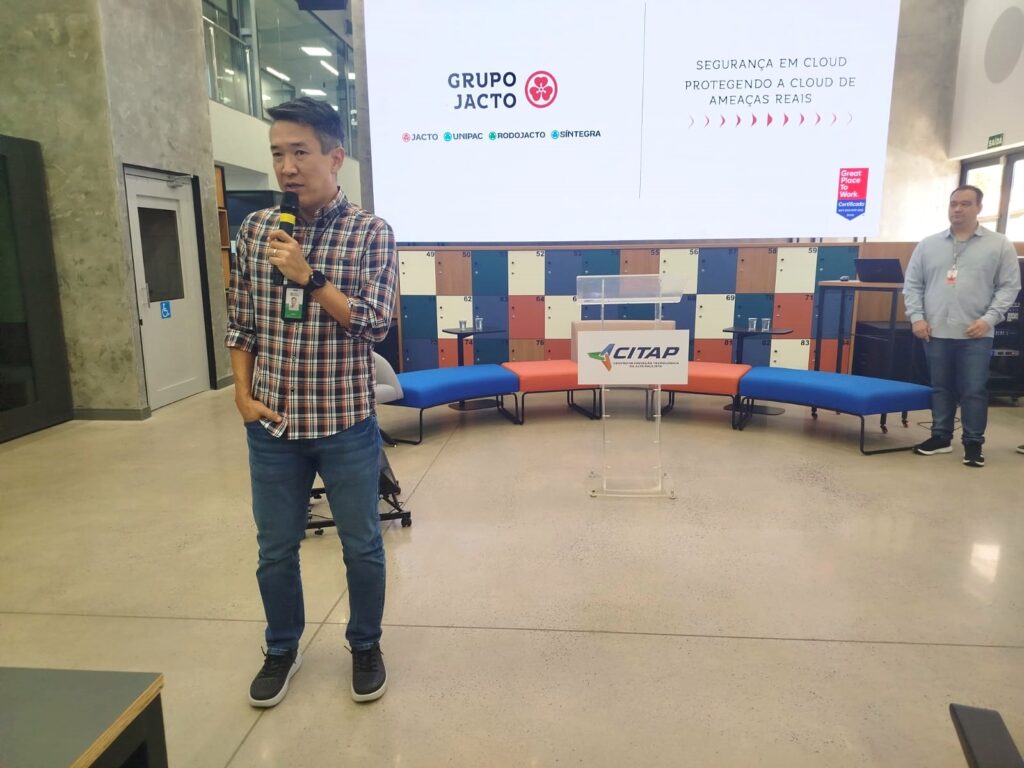 Dessa vez, o tema foi “Protegendo ambientes em cloud contra ameaças reais”, com Rafael Shimabuku e Stenio Ignacio, analistas de segurança da informação do Grupo Jacto. O encontro trouxe uma abordagem técnica sobre análise das principais superfícies de ataque em ambientes cloud, como falhas de configuração, controle de acesso inadequado e exploração de vulnerabilidades.