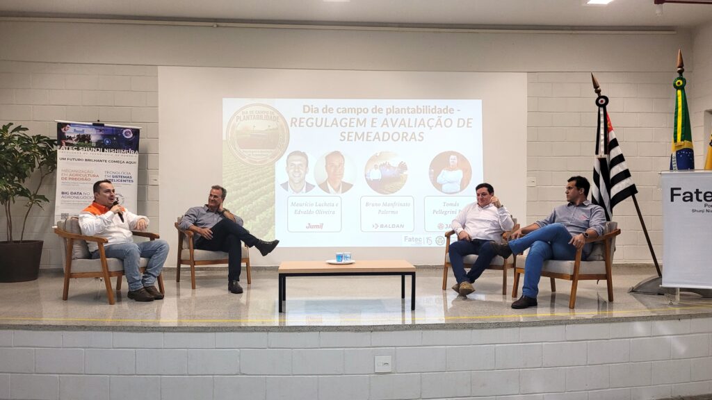 Em mesa-redonda, especialistas das empresas parceiras Jacto, Jumil e Baldan discutiram aspectos relacionados à regulagem, ao desempenho e às boas práticas no uso de semeadoras, com foco na eficiência produtiva.